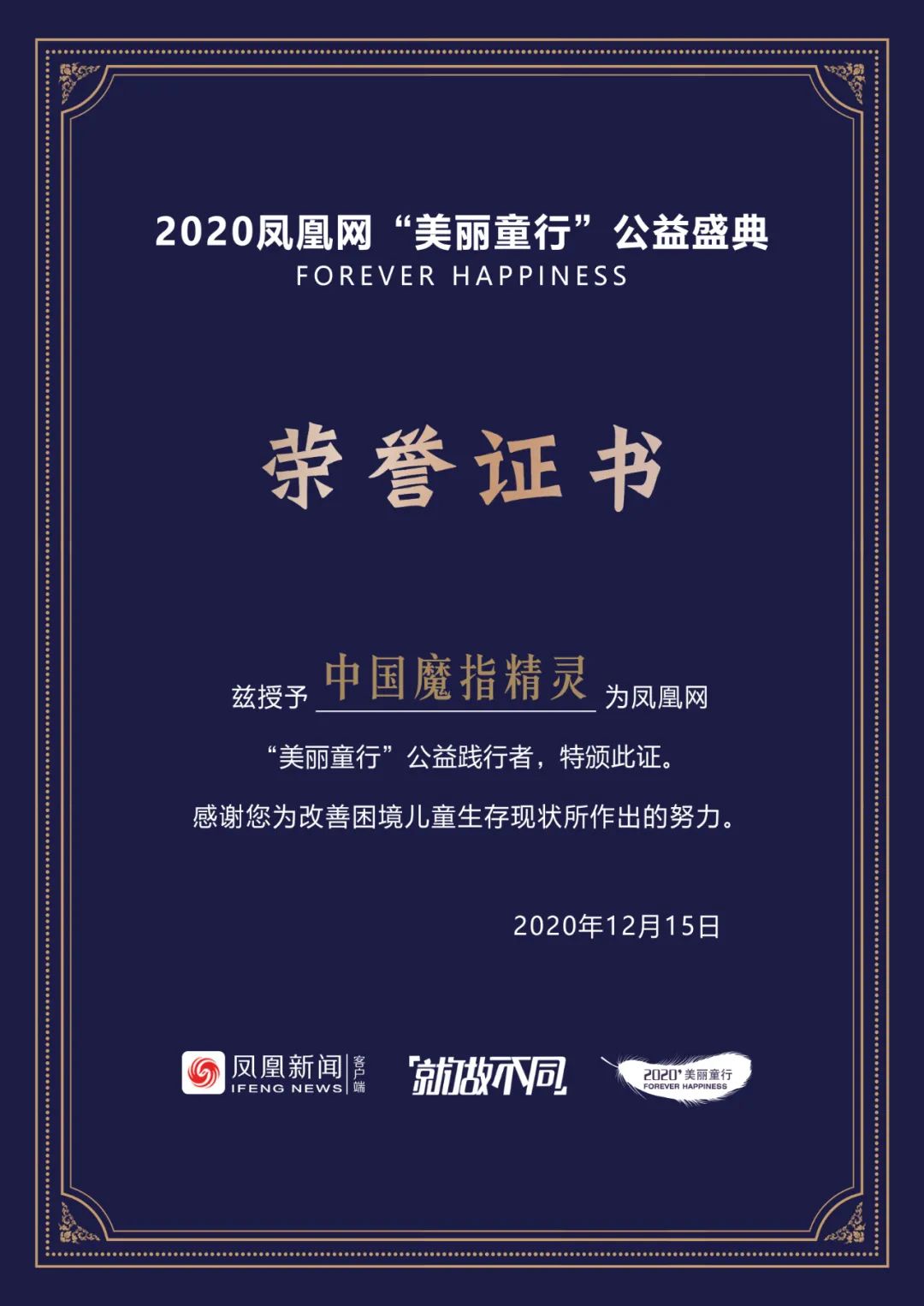 最后,令人欣喜不已的是,中国魔指精灵和我校分别荣获凤凰网“美丽童行”“公益践行者”及“公益践行机构”的荣誉称号。未来,中国魔指精灵将在公益道路上继续践行,充分彰显公益的力量,给社会传递更多的爱与正能量!